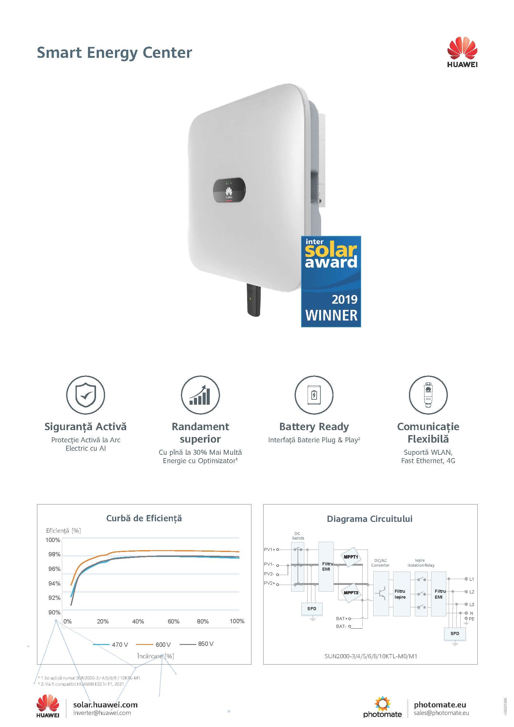 - Eficiență 98.0% EU | 98.6% maxim